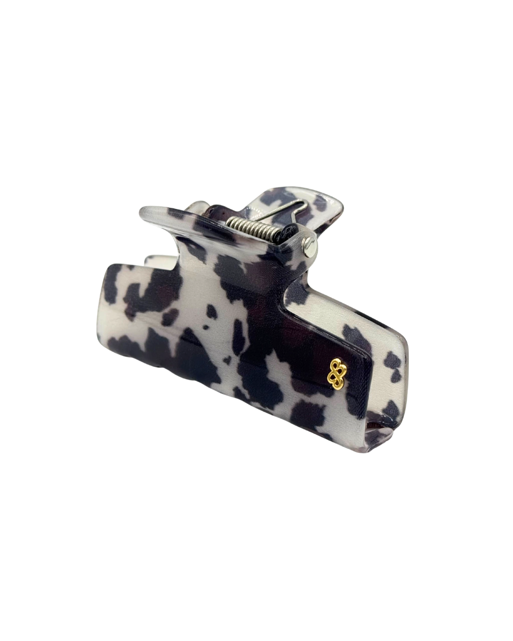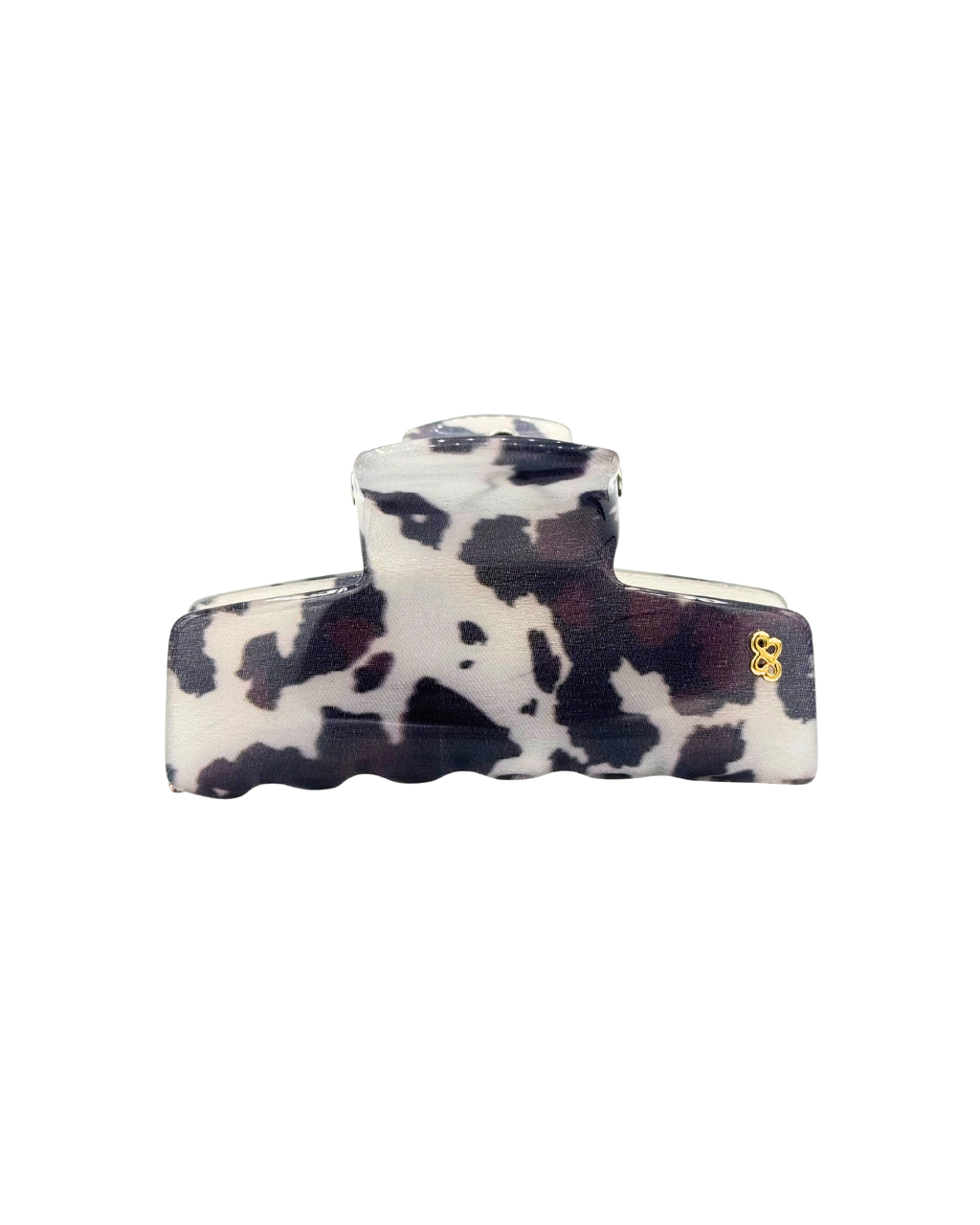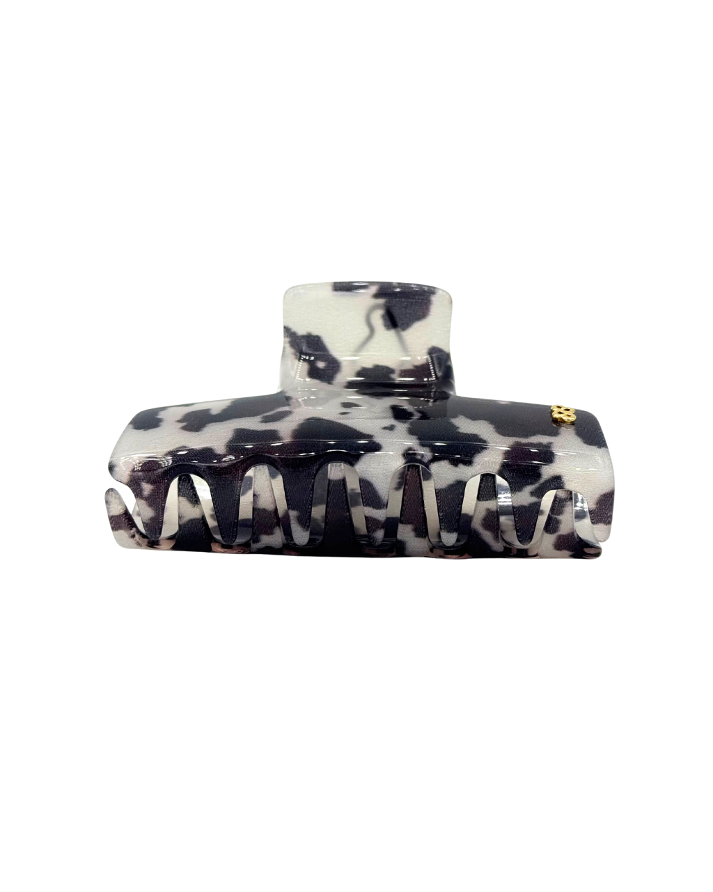 Prendedor de cabelo Bianca Accessory® New Delphin Grande com 7 dentes de cada lado e fixação firme. Feito artesanalmente em acrílico premium, com mola patenteada em aço inox e monograma banhado a ouro.